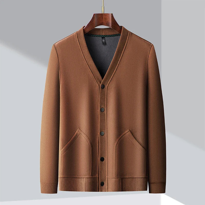 Tiszta és sokoldalú, ez a gombos kardigán klasszikus V-nyakú és funkcionális elülső zsebekkel rendelkezik. Puha kötött anyagból készült, bordás mandzsettákkal, tökéletes rétegezéshez vagy önálló viseléshez. Időtlen darab a fáradság nélküli mindennapi stílushoz.