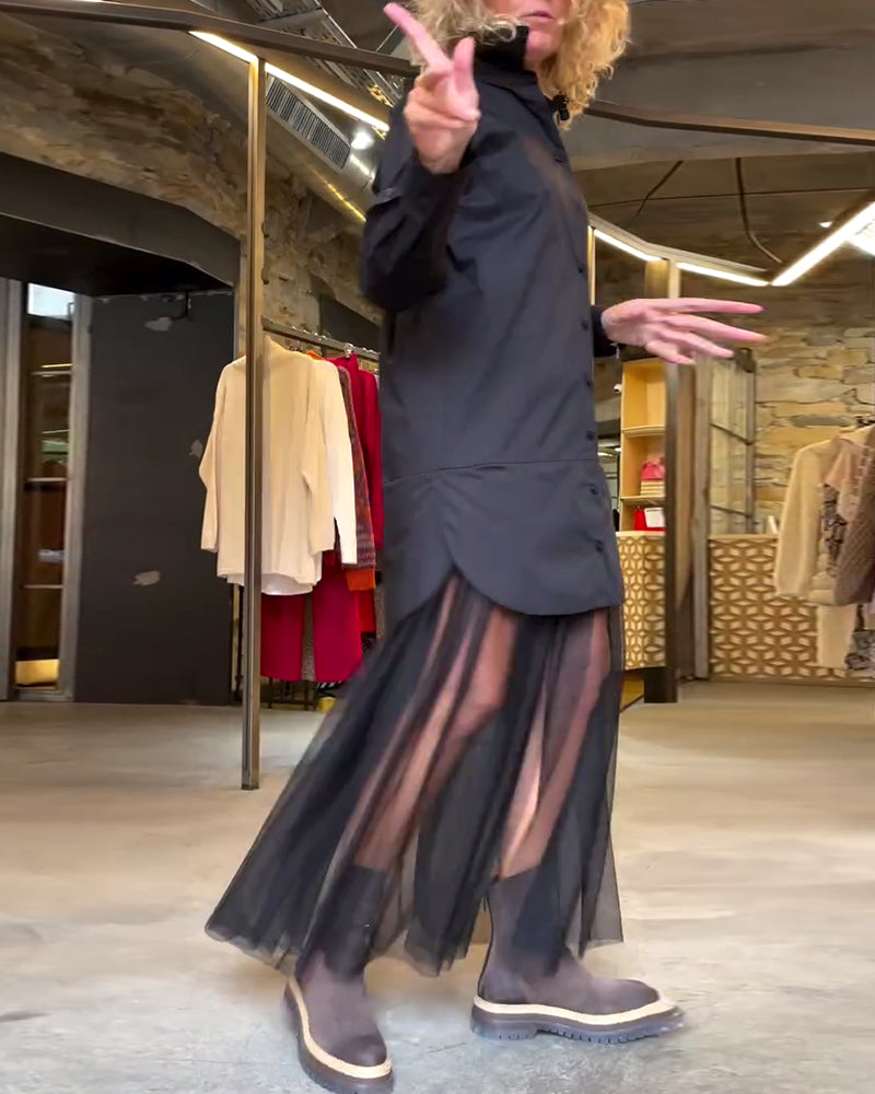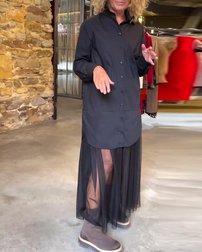 Leonie - Casual Hosszú Ujjú Hálós Patchwork Ruha